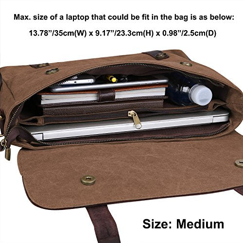 - This canvas messenger bag can fit in A4 magazine, up to 14-inch laptop, textbooks, mobile phone and iPad