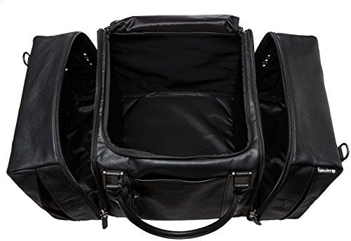 Details: We teamed up with the shoe brand Freeman Plat to offer our first leather Sneaker Duffel bag. Like our other best selling travel bags, it too is designed with two large dedicated shoe compartments. A large middle compartment in the center, distributes weight perfectly and fits a weekend's worth of clothes. This black leather bag has a vegetable tan bottom panel with metal feet.