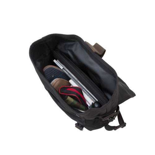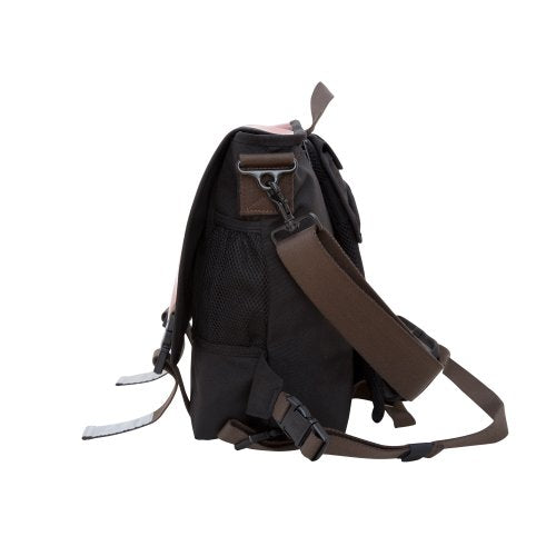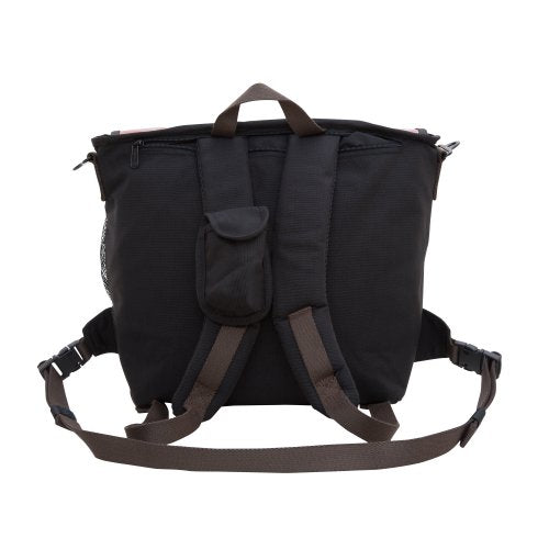 Details: This multipurpose bag can transform into 3 different styles the traditional shoulder strap is used for cross body hauling, the handle is for grabbing on the go, and the hideaway shoulder straps convert into a hands-free backpack. The vinyl lining and outer flap keep all of your items completely waterproof and safe from the rain. The detachable insert in the main compartment safely stores a laptop up to 15 inches. The hidden zippered compartment, under the flap, holds things that can be reached quickly. The bag also has a removable cell phone pouch and a place for a water bottle. A Velcro enclosure keeps everything inside secure yet easy to access.