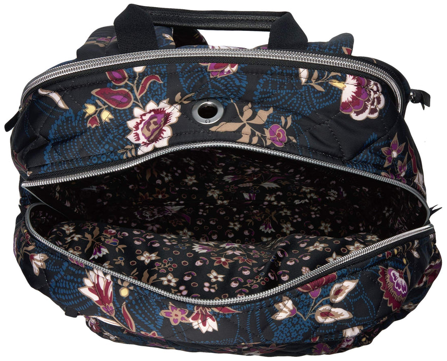 • Hassle free commute: the Vera Bradley campus backpack is made from quilted, sleek, water-repellent polyester, and features 2 zip pockets, 2 side slip pockets, and a hidden back zip pocket so you can travel with ease and arrive in style