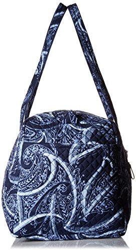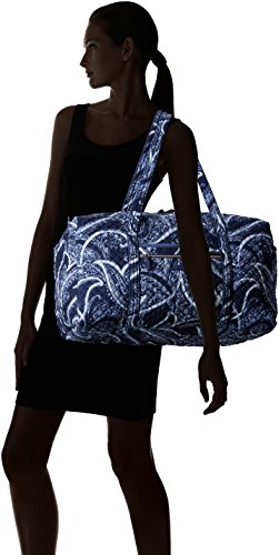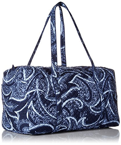Details: Vera Bradley has crafted the perfect size, carryon compliant duffel to fit everything you need for your next adventure. The Iconic Large Travel Duffel is the fashionable solution for storing your travel essentials, packing efficiently, and avoiding checked bag fees - measuring 11.5 inches high, 22 inches wide, and 11.5 inches in diameter. The interior of this spacious duffel features one zip pocket and three elastic mesh pockets. Skip the extra carry on and take advantage of these pockets to organize your cosmetics, hair products, jewelry and other toiletries. The exterior features one zip pocket, a charger pocket, and three slip pockets that are perfect for stowing your travel essentials – wallet, phone, boarding passes, reading material, and snacks. Keep your most important items at your fingertips with pockets positioned for quick access and soundly fastened for your flight. The Iconic Large Travel Duffel keeps you hands-free so there is plenty of room for adventure. With a 15 inch strap drop, you can grab the dual straps on the go or throw over your shoulder for hands-free attention - either way, the top zip closure keeps your personal items securely protected. Whether it’s a weekend getaway or a girl’s trip, Vera Bradley has designed this necessity for every traveler. Crafted with our lightweight signature cotton, you can use the duffel to upgrade your organization or fold flat to pack as an extra travel bag. When quality material meets precise craftsmanship, you get a bag made to last through all of life’s journeys. Care: Machine wash cold, gentle cycle, use only non-chlorine bleach as needed; line dry