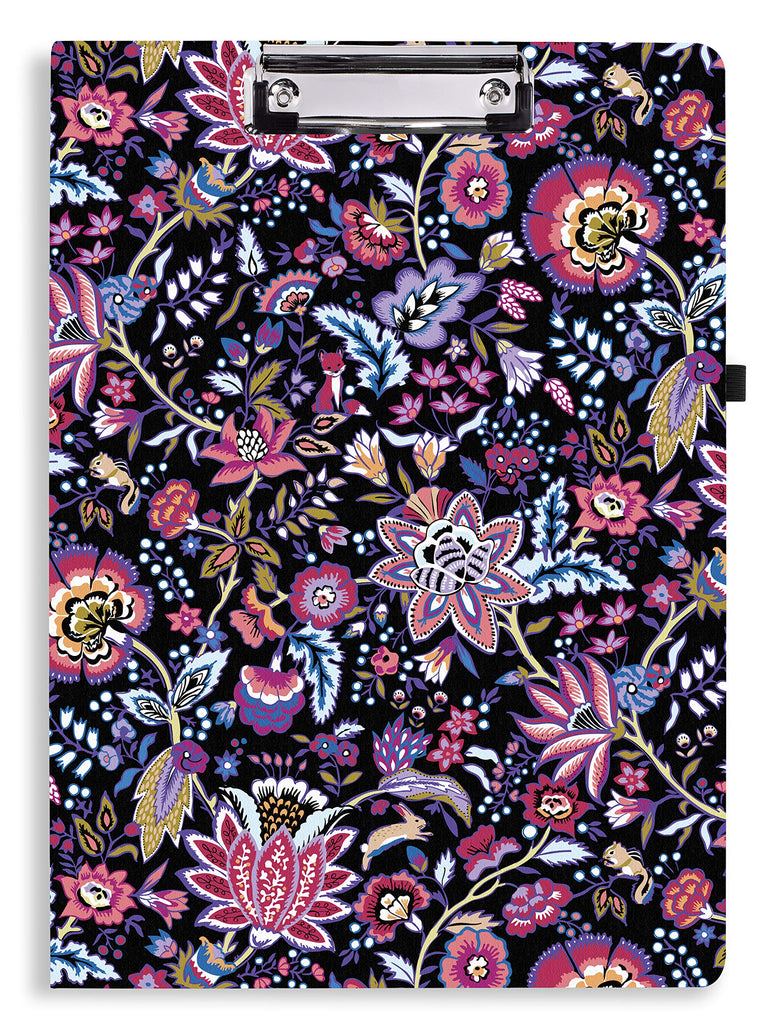 - Made with a hard cardboard cover, this fun clipboard features a multicolored floral exterior with a matching interior