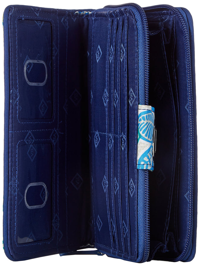 Details: Just because the days are getting shorter doesn’t mean you can’t bring a little light into your life with our bright Vera Bradley colors and patterns! Find the perfect accessories to match your winter fashion this year, or search our collection for the perfect holiday gift! Our genuine Vera Bradley RFID Turnlock Wallet will warm up your sense of style this season with the fun and considerate designs we are known for. Our RFID Turnlock Wallet features all the card space you could want with a whooping 12 card slips with RFID protection, internal bill pocket, checkbook slip, secure turnlock on the front, and two ID windows to make flashing your pictures easy without removing your ID. Available in both Signature Cotton and Vera Vera Microfiber in a variety of patterns. At Vera Bradley, we believe in quality and style which is why we build our beautiful bags to keep you in lasting luxury. Our Signature Cotton Collection focuses on fun and functional 100% cotton fabric with clever and practical details for durability and fade-resistance. The quilted stitching sewn in tight configurations make up the iconic Vera Bradley Square Diamond, which not only adds an element of embroidered appeal and aesthetic, but also enhances the structural integrity of your favorite bag. Our bags are made for long lasting convenience and style, this item can be a go-to staple for years to come. At our very core, Vera Bradley is an innovative brand for women. We’ve always been inspired by the needs of real women, and our proudest moments have been when we can bring communities of women together through their shared love of beauty. We design our products with a deep understanding of our consumer. You are the focus of all we do.