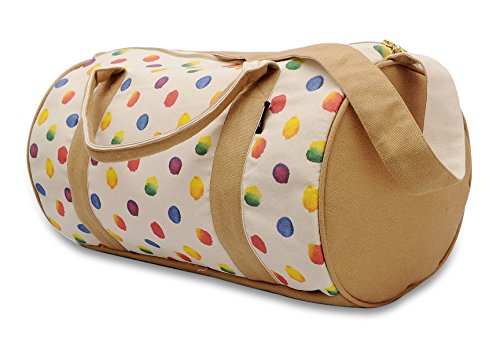 Details: This directly printed canvas sports duffle is great to throw your gym gear in or for overnight travel. It's big enough to hold your shoes and a change of clothes, yet small enough to be easy to carry around. The 100% pure cotton material is soft to the touch. You don't need to worry about your personal belongings getting damaged. As a stylish design, you can use the bag as a shoulder bag or carryall. The adjustable straps are also detachable. In addition, this travel bag can be easily put under your flight seat. It has the perfect amount of space to carry all of your vacation essentials.Product Dimension: 9''H x 9''W x 18''L inches. Due to the quality difference between different monitors, the picture may not reflect the actual color of item. We guarantee the style being the same as picture shown. But the performance on different bodies might not be the same as the model. The bag might get wrinkle during international shipping. Do not wash for one week after you bought. Hand-washing recommended.