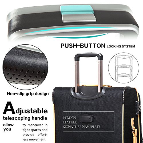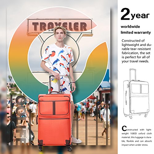 Details: This luggage made high quality hard wearing super lightweight 3color Jacquard xoford material. The sturdy, adjustable telescopic handles and the form-grips make them easy to handle. Four multi-directional smooth and silent rubberized wheels allow 360° rolling in multiple directions, for easy maneuverability. Not spacious enough, don't worry. 24in, 28in has expanded function, adding an extra 2 inch of width.Plus, multiple front zippered pockets are perfect for travel documents and magazines. It also features four spinner wheels for smooth rolling. Dual top and side carry handles makes lifting easy. Spacious design: 24in, 28in has expanded function, adding an extra 2 inch of width. 20in features a large front pocket. Tough Wheels: Four multidirectional smooth and silent 360° wheels, for very high ride comfort. Better material: Better than polyester material, the luggage is made of 3color Jacquard oxford cloth. Type of closure: Exquisite and durable zippers closure. Telescope handle: Push-button locking internal retractable handle system. TSA Lock: TSA combination lock with resettable code for secure travel in the USA. Full-lined interior: Fully-lined interior with separate mesh pocket, Functional straps to secure the packed clothes. > Measures: > 20inch (23 x 10x 14), 24innch (16.5 x 11 x 27) 28inch (18 x 12.5x 31), 24in,28in is Expandable add 15%to the scalable space. > Size: 20' L23in* W10in* H14in> 24' 27in* W11in(13in when it is expandable)* H16.5in> 28' L31in* W12.5in(14.5in when it is expandable)* H18in> Capacity: 20in38L, 24in60L, (75L when it is expandable) 28in 93L(110L when it is expandable) > Weight: 20in 6lbs 24in7.3lbs 28in9.7lbs> Travel days: 20in1~4days 24in4~7days 28in 7~9days>