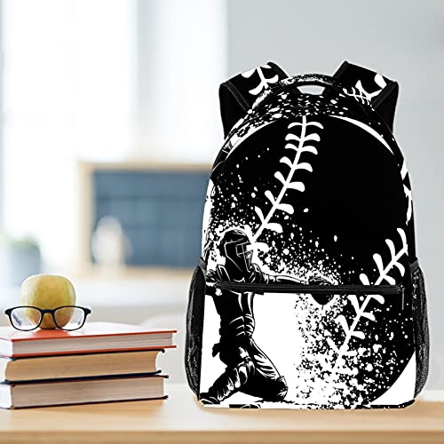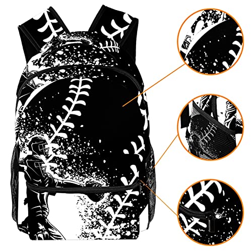 LORVIES Black White Design Softball Lightweight School Classic Backpack Travel Rucksack for Girls Women Kids Teens