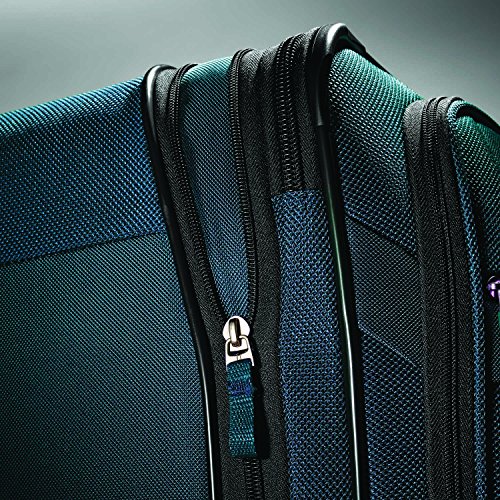 - Integrated top and side carry handles; Ultra lightweight beveled alloy pull handle, Large front panel interior pocket for added packing organization