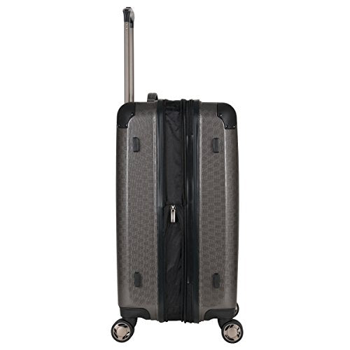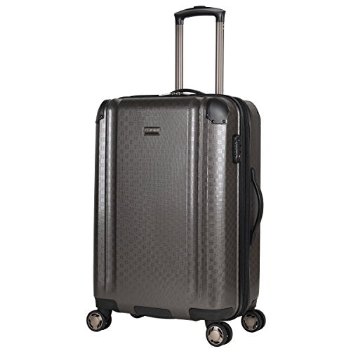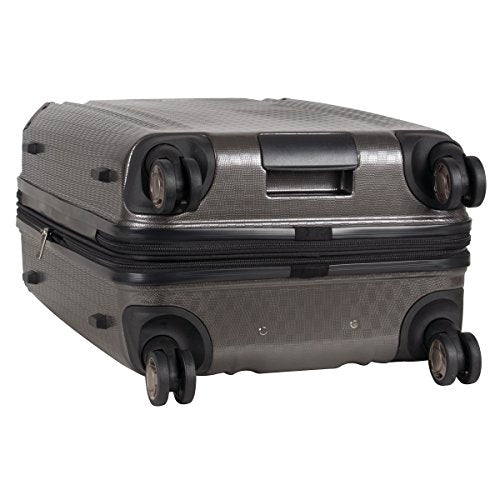 Details: 24" textured pap expandable 8-wheel upright. Made with zipper pullers that fit a TSA lock for ultimate security. Made with zipper pullers that fit a TSA lock for ultimate security. Expands for larger packing capacity. 8-Wheel spinners allow smooth 360 degree rotation. Durable, dent resistant pap (polycarbonate & ABS blend) with molded corner reinforcement for maximum impact resistance and a fully lined interior. Main compartment interior contains a side zipper pocket for smaller items and a buckled garment panel with two zippered mesh pockets. Under the lid interior includes a large u-shaped zipper pocket with two additional zipper pockets. Retractable top handle, side handle, and bottom grab handle allow for easy lifting. Molded feet allow upright to stand on its side. Locking retractable trolley handle. Manufacturer 10 year limited warranty. Overall Dim's: 27.5" h x 17.5" w x 10.5"-12.0" D. Weight: 9.7 lbs.