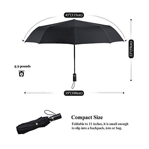 - 【Large & Portable Umbrella】 Canopy Arc: 45 inches, 3 section umbrella measures 11inches when folded up and less than 1lb, our rain umbrella is large enough to protect both you and your loved one from getting drenched in raining day, give you sweet shelter. And it comes with a carrying sleeve, compact enough to fit in your purse, backpack, luggage, car,briefcase and more.