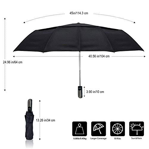 • CONVENIENTLY SIZED - Your Oak Leaf Auto Open Folding Umbrella is compact, light and perfect for travel.Measures 41 in (104.14 cm) in diameter when open, and is large enough to shelter both you and your loved one from the downpour. Measures 13.38 in (34 cm) long when folded and can easily fit in your bag.