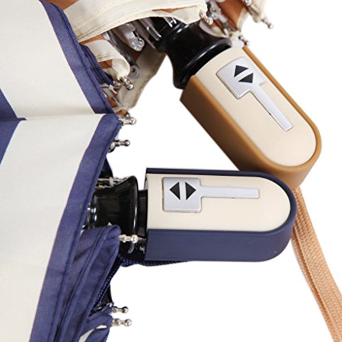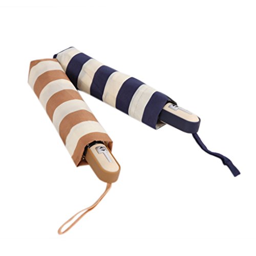 • 100% Brand New and High Quality Fashion Unisex Womens Mens Navy Stripe Compact Folding Auto Open Close Automatic Umbrella Anti-UV Parasol Windproof UV protection for Sunny and Rain Day