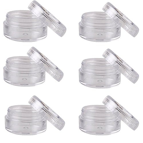 Details: Lot of 50 Clear plastic cosmetic & multi-purpose jar container pot with clear threaded cap - 5 Gram. Easily screws together for compact storage of acrylic powder, liquids, nail designs and much more.Package Include: 50pcs 5 Gram Size Cosmetic Containers