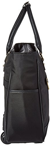 - Nylon Twill Single Gusset Wheeled Computer Business Tote.Compatible With Most Tablets. Nylon Twill With Split Leather Trim Exterior Body Material And Fully Lined Interior. Easy Access, Front Exterior Hidden Zipper Pocket With Organizer