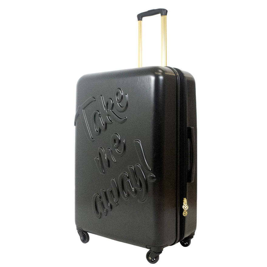 Details: Our take me away luggage has a major case of wanderlust. It is just begging you to book that trip and start racking up the miles! in a cool black finish with embossed words, this suitcase has serious designer dimension. It is lined in polyester fabric and features a spacious full body compartment, multi-directional wheels, and a gold finished telescoping handle. Macbeth collection is world renowned for putting the "fun into function" and this luggage is no exception. Margaret josephs is a true jet-set gypsy and loves to travel. Each of the Macbeth collection luggage pieces has been designed to be the ultimate travel companion.