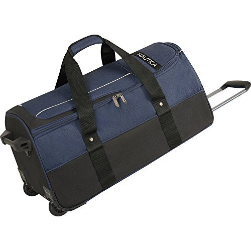 Details: Sail away with the Nautica Naval Yard 24 inch Wheeled Duffle. Equipped with in-line skate wheels, this luggage was made for easy and breezy travel. Durable polyester Push-button locking trolley handle In-line skate wheels Top padded carry handle with velcro strap Fully lined interior 5 year warranty ID: 2590 Dimensions: 24" Wheeled Duffle - 24." x 12" x 12" - 4.95 lb