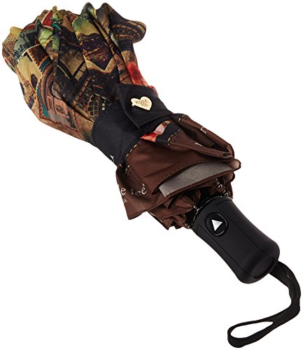 Details: Prep yourself for rainy days with the exclusive Nicole Lee umbrella. Exterior features: exclusive NL print. Made of Pongee. Automatic open push-button. Rubberized handle with wristlet for easy carry. Foldable to 12" inch small enough to slip in a coat pocket, tote or bag. Snap closure with NL nameplate. Wristlet 4.5" inch drop. Colors available are Taxi goes ny, elsa's dream catcher, dream comes true, vintage European stamp, read my lip. For cleaning, wipe with damp cloth.
