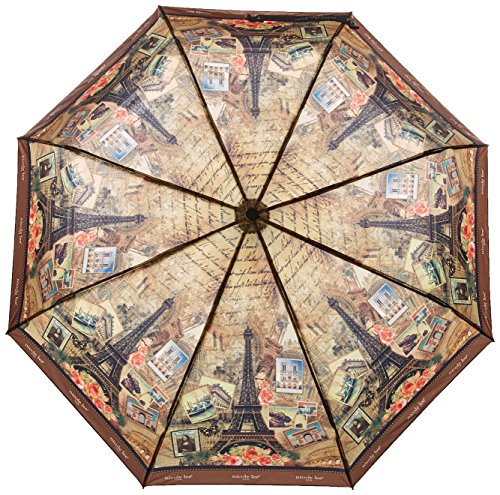 Nicole Lee Women's Automatic [Vintage European Stamp Print] Push Button Foldable 12" Inch Umbrella