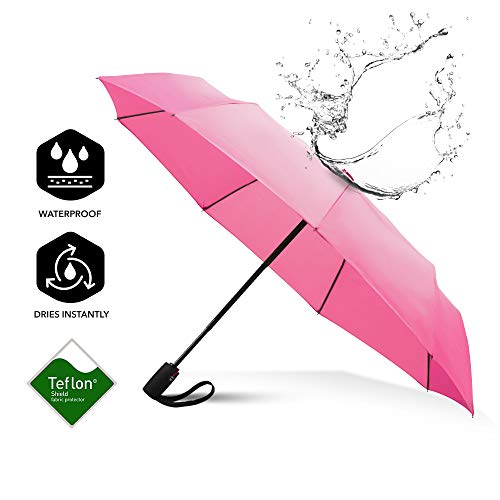 - SUPERIOR WATER-REPELLENCY - Put the technology of Teflon to work for you. Waterproof, weatherproof and instantly dry, the foldable and durable Repel Travel Umbrella defends against the elements like nothing else.