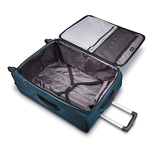 - FOUR MULTI-DIRECTIONAL SPINNER WHEELS for easy mobility, rolls upright so there is no weight on your arm or shoulder