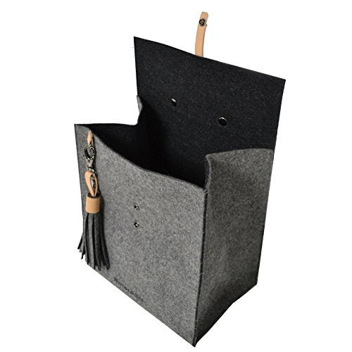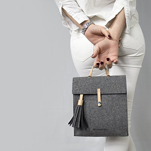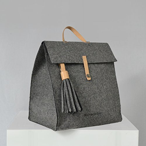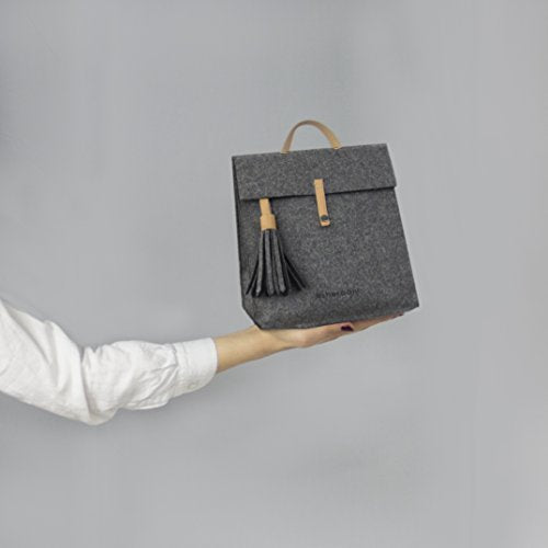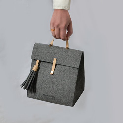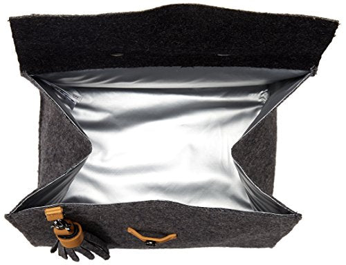 Details: A naturally insulated wool lunchbox with genuine leather accent, a removable tassel and a dual option snap down closure.