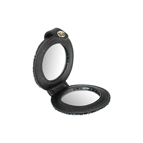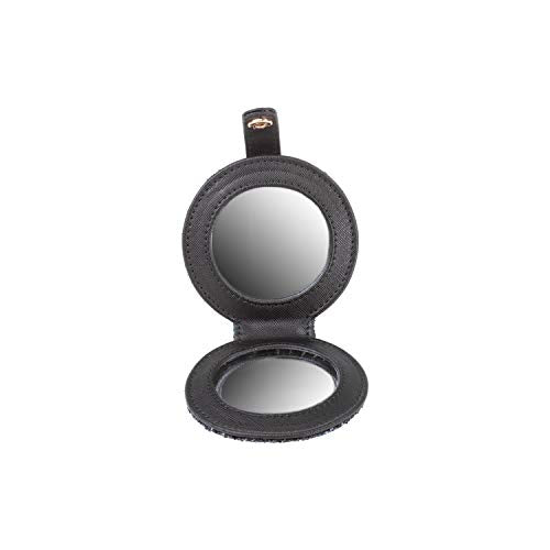 Details: On-the-go beauty just got easier! this double-sided mirror is a fashionable addition to your cosmetic bag, and secures with our signature gold 's' logo snap closure.