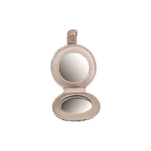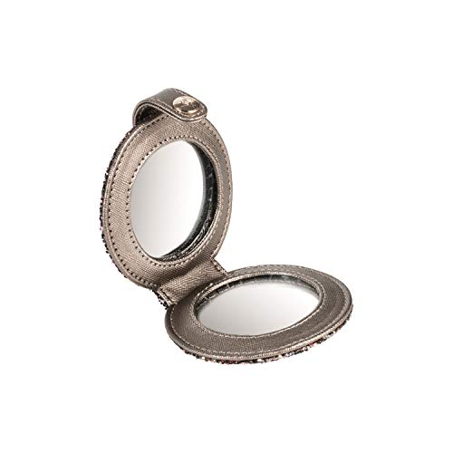 Details: On-the-go beauty just got easier! this double-sided mirror is a fashionable addition to your cosmetic bag, and secures with our signature gold 's' logo snap closure.