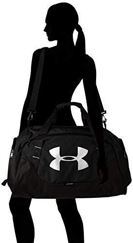 Details: UA Storm technology delivers an element-battling, highly water-resistant finish .Tough, abrasion-resistant bottom & side panels .Large front zippered organization pocket .Adjustable, padded, HeatGear shoulder strap for total comfort .Padded top grab handle .Large vented pocket for laundry or shoes, one mesh pocket & an additional large zippered pocket for organization .D-ring on front panel for added attachment point .Dimensions: 24.8" x 11.8" x 12.9" (Width x Length x Height) .Volume: 3,417 Cubic In. / 56 L .