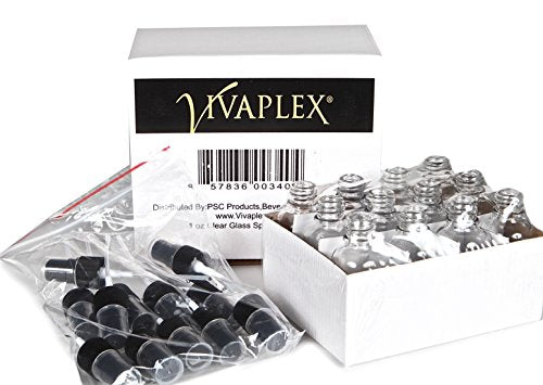 - 12 - 1 oz, Clear Glass Bottles, with Black Fine Mist Sprayers, and Dust caps