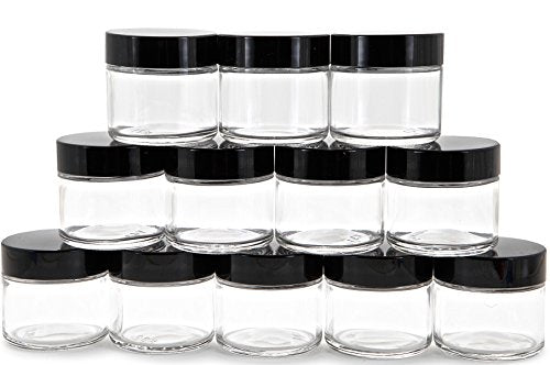 - 12 - Clear, 2 oz glass jars, with inner liners and dome lids.