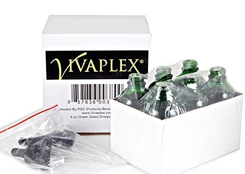 Vivaplex, 6, Green, 4 oz Glass Bottles, with Glass Eye Droppers
