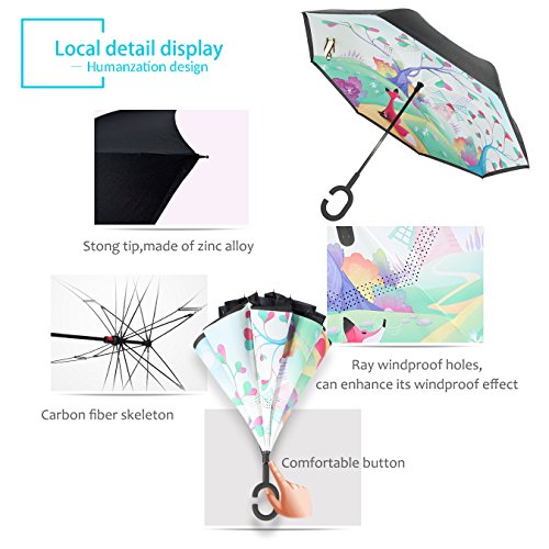 - WINDPROOF: YOU WON'T HAVE TO CHANGE YOUR UMBRELLA EACH SEASON AGAIN! With the carbon umbrella stand, our inverted umbrella is much softer and more resilient and not easy to be broken. The umbrella cover is more stable with its stand supporting reversely. It's the best windproof umbrella that withstand wind speeds in excess 60 miles per hour!