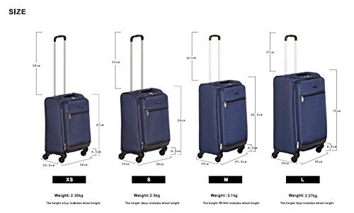 - 25-inch softside spinner check-in luggage for 3 to 5-day trips