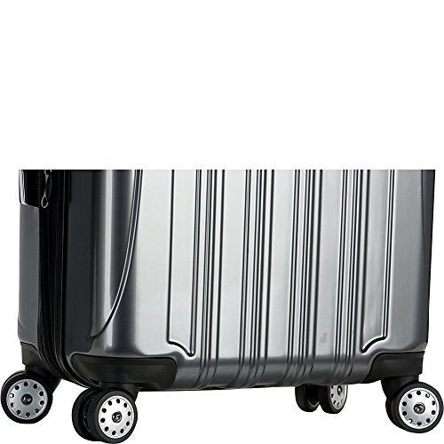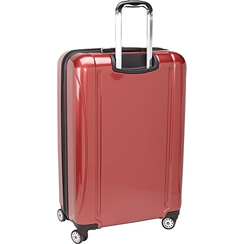 Details: A ridged exterior creates a sleek texture on the outside of this spinner case. The Delsey Helium Aero 29 Exp. Spinner Trolley is constructed from durable polycarbonate material and has a lightweight and durable design with a deep metallic glossy finish, a two position locking handle, and double spinner wheels that make it incredibly easy to maneuver. The interior expands to offer more packing capacity and has a fully lined interior with two packing compartments and criss-cross tie-down straps that secure items in place. Other features of this case include self-repairing zippers, top and side carry handles, and an integrated 3-dial TSA combination lock.