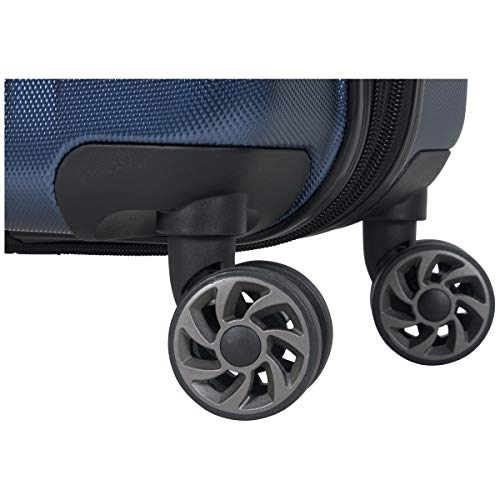 - simple handling: (id) 8-wheel spinners provides effortless 360 degree navigation allowing you to get to where you're going faster. (Ii) molded feet allow luggage to stand upright on its side. (Iii) retractable trolley handle retracts to be 41 inches tall with a locking push button mechanism. (Iv) top and bottom easy grab handles. (Iv) meets most U. S. Based airline carry-on size requirements and fits into most airline overhead bin compartments.