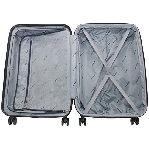 - simplified stowing: (id) two spacious fully lined compartments allow for double sided packing. (Ii) under the lid interior Consists of a u-shaped color pop zipper pocket and a full length, ventilated mesh zipper pocket. (Iii) large interior organizer zipper pocket to store smaller items. (Iv) garment restraint straps help hold clothes and contents in place. (V) expands an additional 2 inches for greater carrying capacity.