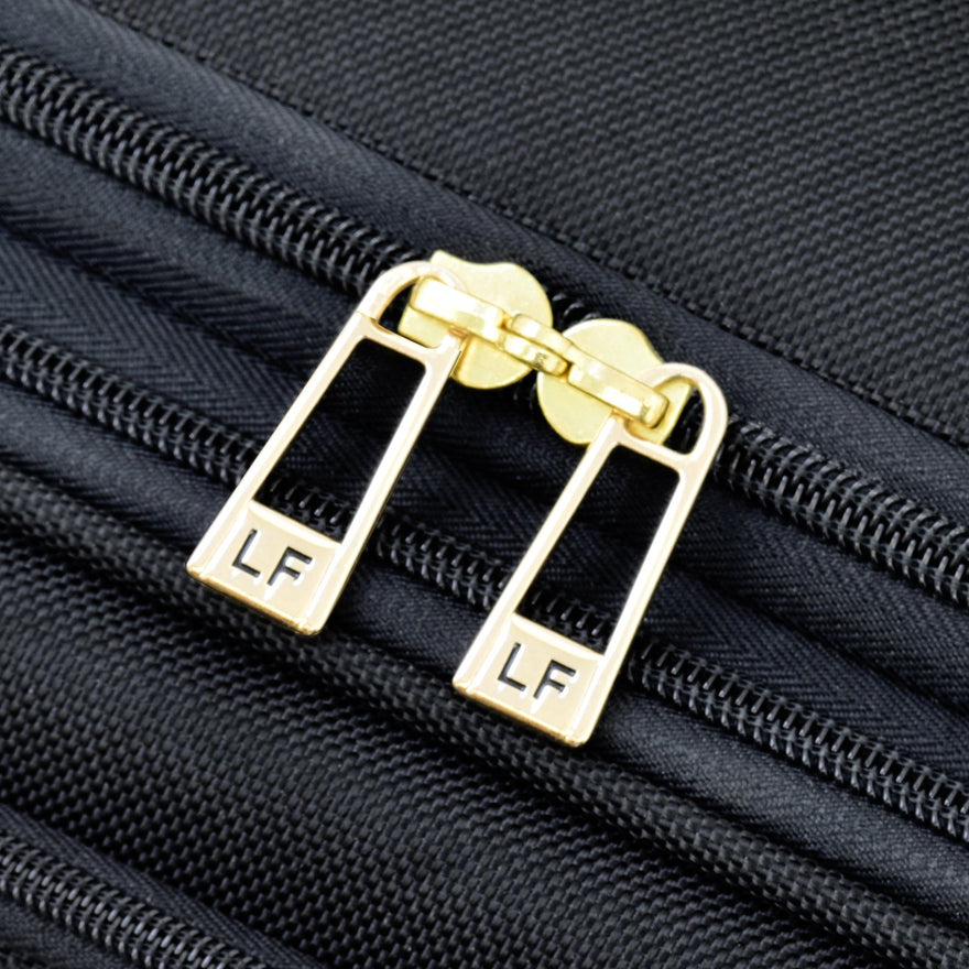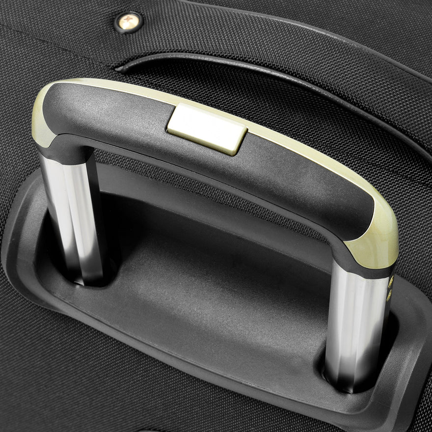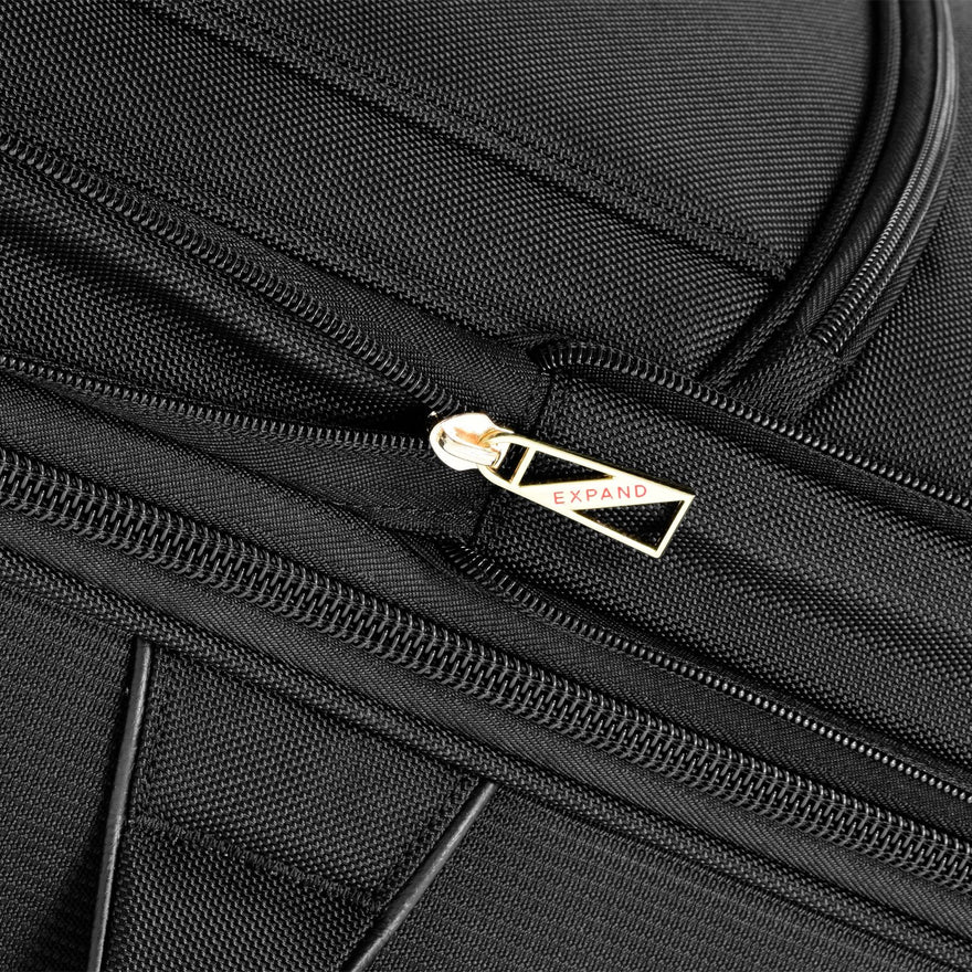 - Expands 2" for additional packing capacity. Top, side and bottom carry handles. Ergonomic signature zipper pulls, on self repairing nylon zippers and corner guards for extra protection.