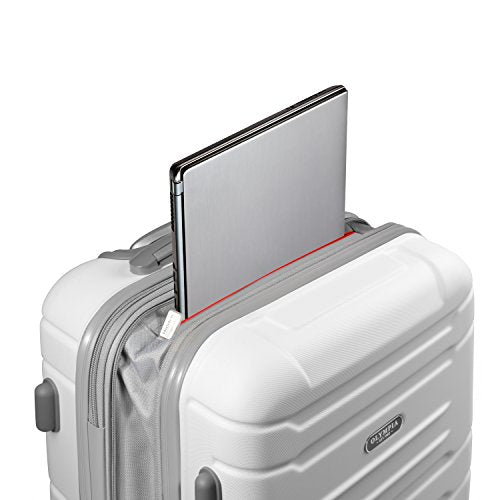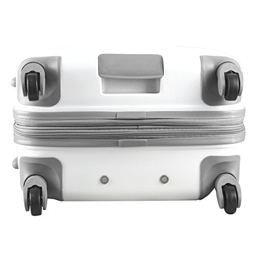 Details: Made of rugged ABS material for durability, the Olympia USA hard side spinner luggage carry-on, makes a perfect travel companions. Each suitcase features four 360 degree spinner wheels, conveniently allowing zero weight movement in all directions. The lightweight aluminum push button locking handle system, lined interior and interior zippered divider with shoes pockets and mesh zip pocket keep your luggage safe and protected. An additional interior zip pocket an elastic tie-belt make travel even easier. Each suitcase expands for extra packing capacity within your luggage.