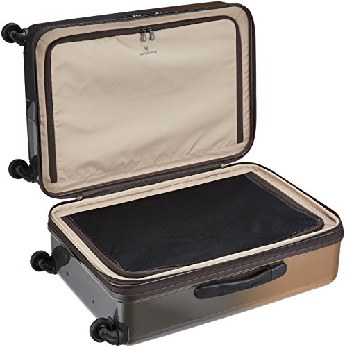 Details: This lightweight 100% pure polycarbonate global carry-on easily glides down airplane aisles and provides added capacity when needed courtesy of a zippered expansion system. On the interior zippered dividers create two spacious packing compartments while an expansion system provides additional packing capacity when needed. Comfort grip, one-touch dual trolley handle locks into three positions to accommodate travelers of various heights. Premium 55mm Hinomoto wheels ensure a smooth roll. Y-shaped compression straps keep folded items secure and help reduce wrinkles. Integrated Travel Sentry Approved lock allows TSA screener to open the lock without destroying it, and relock it after inspection. Access Lock Combination Recovery Program allows you to register your lock combination on victorinox.com and recover if ever forgotten. Top haul handle for easy grabbing. Global 10-Year Limited Warranty