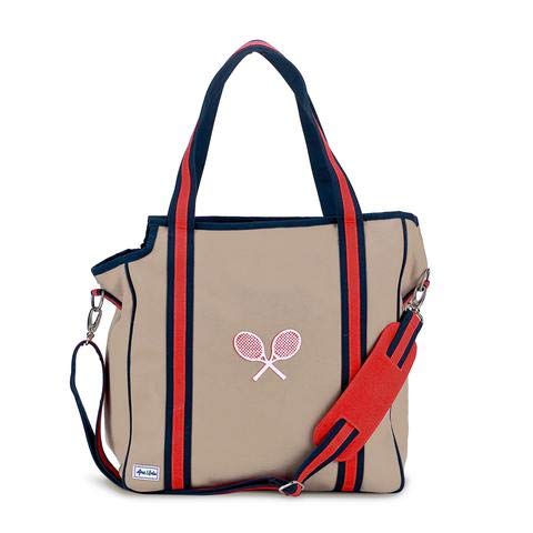 Details: Haul and store all of your tennis gear in style, on and off the court, with the roomy Ame & Lulu Vintage Sport tennis tote. The interior racquet pocket holds up to 2 oversized racquets. Multiple interior pockets and a center divider allow you to pack and carry all of your tennis gear and stay organized.