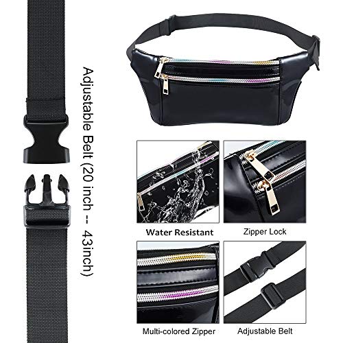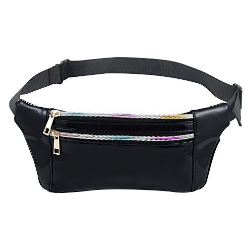 iAbler Holographic Fanny Pack for Women and Men Metallic 80s Shiny Fanny Packs with Adjustable Belt