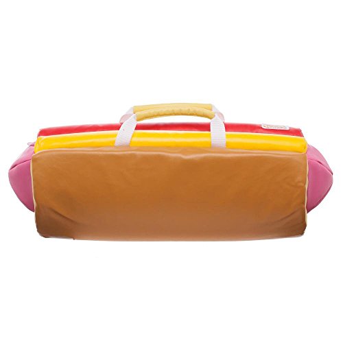 The hot dog duffel bag measures approximately 23" W x 8 1/2" L x 7" D and features a removable foam liner accessible by a zipper at the bottom of the bag.