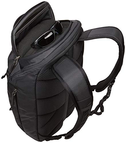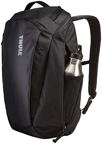 Details: A 23L daypack with unique L-shaped opening, discrete SafeZone valuables storage and spacious yet integrated zippered side pockets