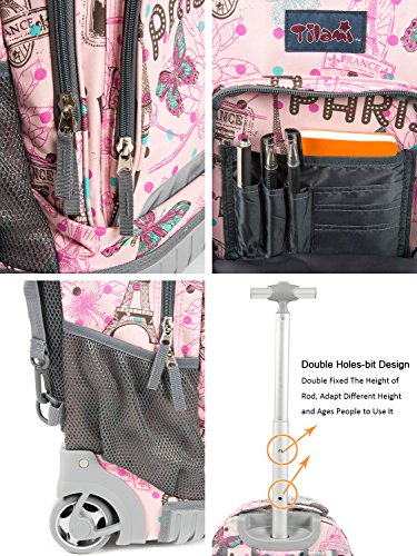 Details: Tilami rolling backpack is a revolutionary wheeled bag designed specifically for school use, and is sturdy, ergonomic and practical. It was designed by parents who got tired of seeing their children carry too much weight in their backpacks, and of badly designed wheeled bags that break easily long before the school year is over.