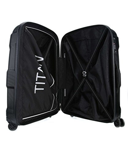 Details: The Titan X2 hard-shell spinner travel suitcase is made from 100% high grade Polycarbonate. Its Stylish Eye catching design is guaranteed to attract attention whenever you travel. It is made from a super lightweight and strong material to last you for years to come. The water-repellent flash finish and zip make it ideal for all weathers. The top functionality of the X2 Flash is enhanced by its ultra-silent double wheels, which are the largest on the market. The luggage rolls beautifully smoothly - on any surface! The TSA combination lock (like the handle) was specially developed for TITAN and is recessed into the shell. TITAN is internationally known as the think tank when it comes to suitcases in particular the mix of function and design which distinguishes the Titan travel bags and cases make the products so unique and special. An innovative highlight of the brand are the Titan hard shell cases made of 100% pure polycarbonate - one of the most resistible plastics in the world. The bags are designed and engineered in Germany to the highest standards. Titan high-quality trolley or suitcase can be a choice for several decades - or even for life time. That's why Titan provides a timeless and clean design that is not recognizable because of its decoration but because of the surfaces' structure. The collections of hard-shell trolleys by Titan vary in their front structure. Sometimes it is a smooth surface, sometimes it shows horizontal and vertical stripes. Other series cause attention by their three-dimensional patterns that remind in amour or rotors. Make a statement with the purchase of your new TITAN BAG.