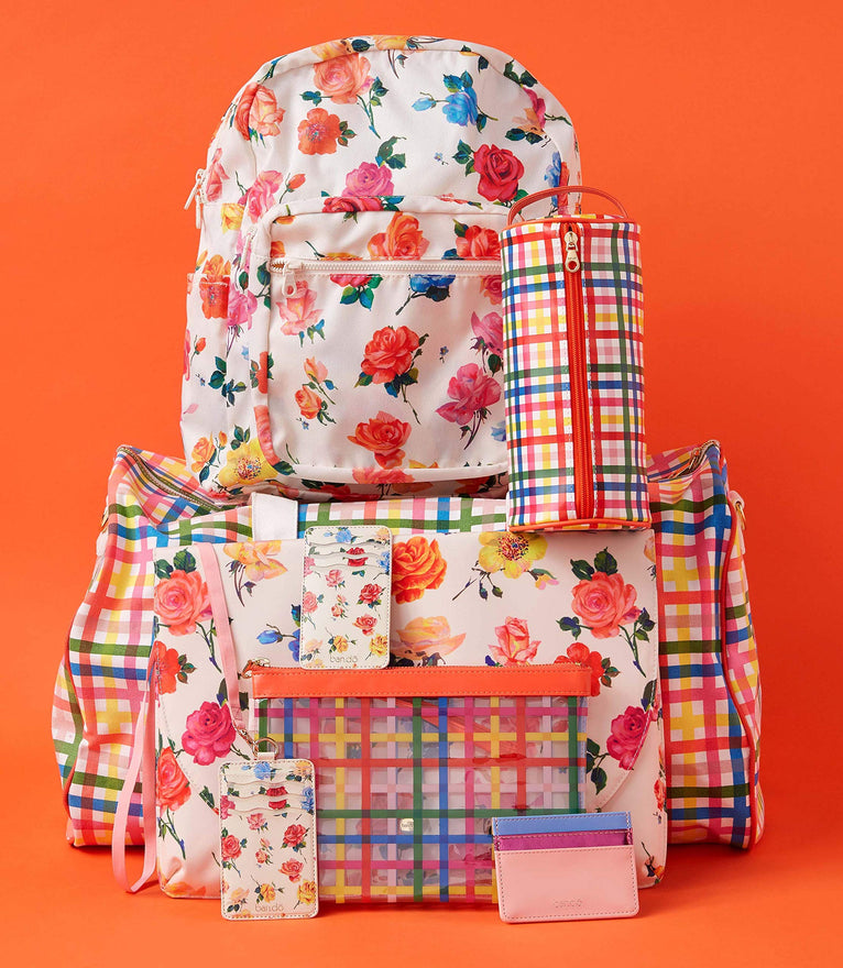- Made of a leatherette exterior with gold metal hardware and a nylon interior lining