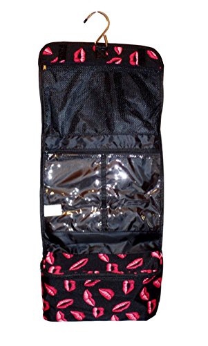 Details: It's easy to take beauty on the go and look stylish doing so with this Hanging Cosmetic Organizer. When unrolled, this fold up makeup bag reveals a large mesh pocket, 2 clear plastic zipper pockets, and a spacious main pocket with plenty of room for all your eye shadows and lipsticks. The metal hook makes for easy hanging in a bathroom or closet. Made of a durable fabric. ***Do not MACHINE Wash.