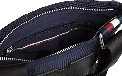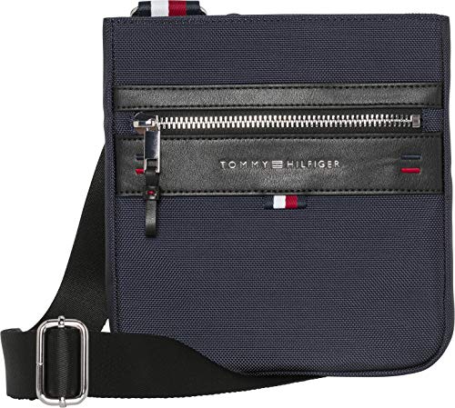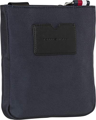 Details: This miniature crossover bag fits in all your essentials, with stylish features such as signature tape on the strap. Highlights Nylon Tommy Hilfiger logo on front Faux leather zip placket Zip closure Adjustable crossbody strap One main compartment One exterior zipped pocket One back card slot One interior zipped pocket Interior elasticated pen holders Signature tape on interior pocket Signature tape tag on front Signature tape at sides Signature stitching on zip pulls Embossed Tommy Hilfiger logo on card slot Shape & fit 20 x 2.5 x 22cm