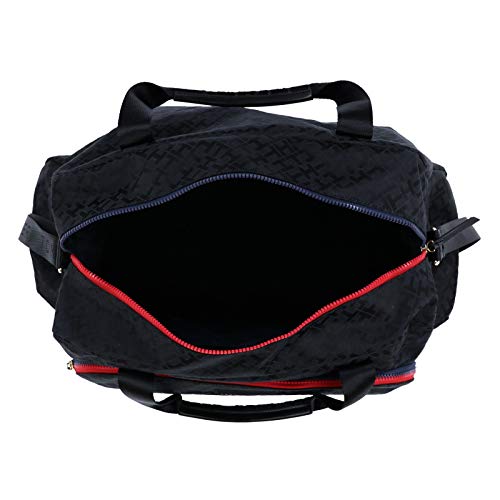 Details: Tommy Hilfiger is a pinnacle of fashion and design. This weekender duffle bag has dual tone zippers and an adjustable shoulder strap featuring the signature logo. When you're on the go, carry your necessities in style with Tommy Hilfiger.