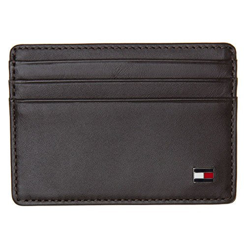 Details: This Tommy Hilfiger leather cardholder features embossed branding and a brown leather outer. Six card slots and larger top slot complete this stylish accessory.