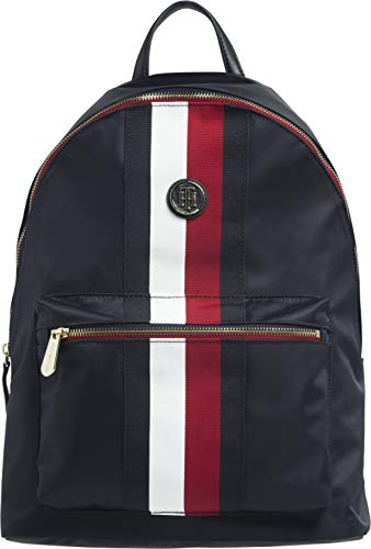 Details: The bold signature tape design and contrast zips add a pop of colour to this backpack with a laptop compartment. Highlights Signature tape on front One top handle Two adjustable shoulder straps Zip closure One main compartment One exterior zipped pocket Built-in laptop sleeve Signature tape on zips Signature metal tag zip pull Tommy Hilfiger logo on interior Tommy Hilfiger monogram plaque on front Shape & fit 40 x 30 x 13cm